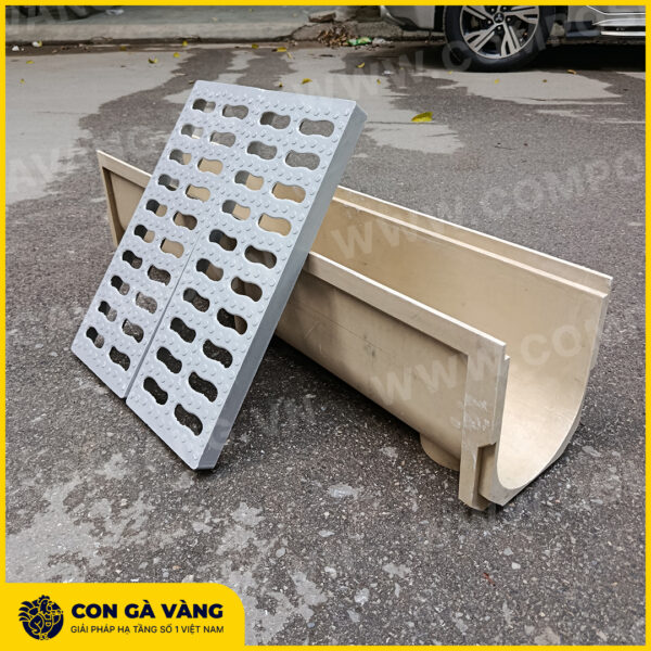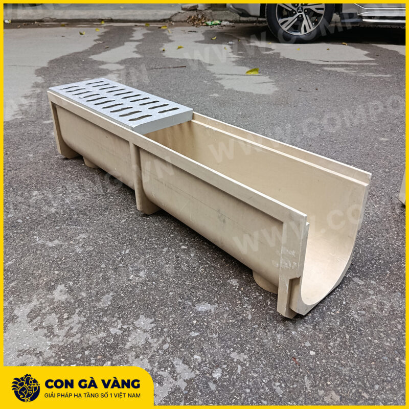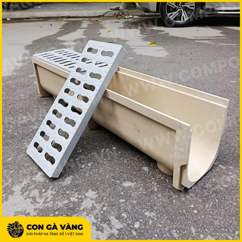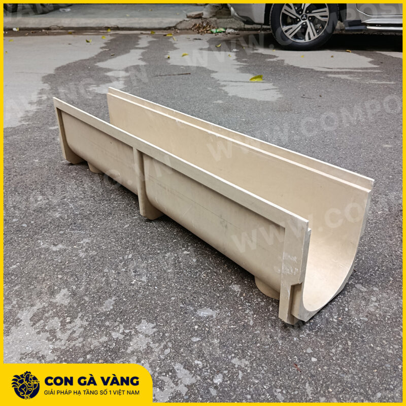 - Thân mương (rãnh): Dạng chữ U, đóng vai trò chứa và dẫn dòng nước. Thân rãnh được làm từ nhựa composite cốt sợi thủy tinh (FRP) có khả năng chống tia UV và không bị ăn mòn bởi các loại hóa chất.