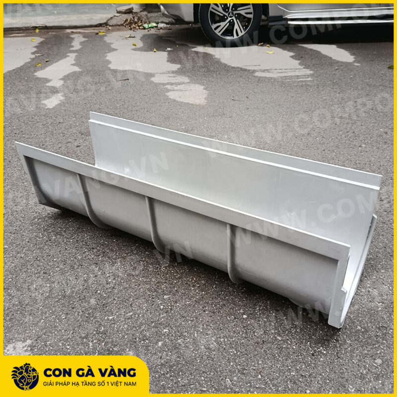 • Thân mương (rãnh): Dạng chữ U, đóng vai trò chứa và dẫn dòng nước. Thân mương được làm từ nhựa composite cốt sợi thủy tinh (FRP) có khả năng chống tia UV và không bị ăn mòn bởi các loại hóa chất.