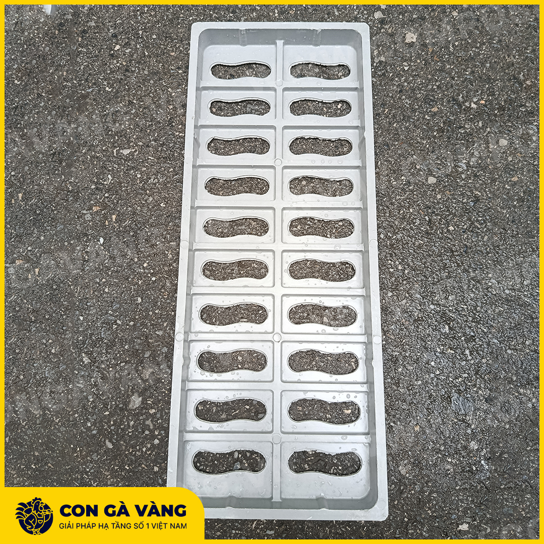 - Bề mặt sản phẩm: Bề mặt sàn phẩm bằng đều, có các lỗ nhỏ để thoát nước và ngăn rác lọt xuống rãnh thoát nước. Các góc cạnh được bo tròn nhàm đảm bảo an toàn khi vận chuyển sản phẩm