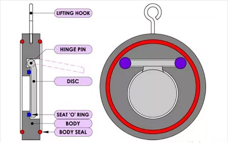 - Đĩa van (nắp van): Được kết nối với bản lề phía trên thân van, chỉ có thể mở theo một hướng duy nhất, kết nối với bản lề bằng các bu lông, đai ốc…