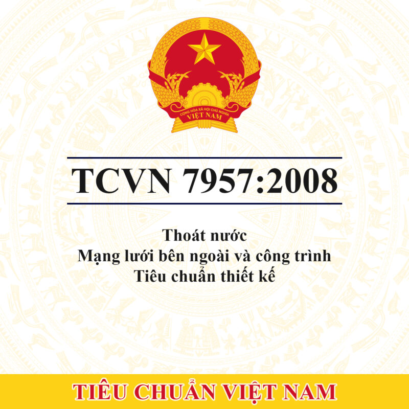 Đây là tiêu chuẩn quan trọng nhất của Việt Nam liên quan đến thiết kế hệ thống thoát nước. TCVN 7957 quy định các nguyên tắc kỹ thuật cho việc thiết kế mạng lưới cống, hố ga, công trình thu nước và các cấu trúc thoát nước khác trong đô thị và khu công nghiệp.